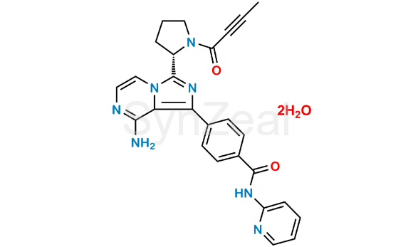 Acalabrutinib Dihydrate is chemically (S)-4-(8-amino-3-(1-(but-2-ynoyl)pyrrolidin-2-yl)imidazo[1,5-a]pyrazin-1-yl)-N-(pyridin-2-yl)benzamide dihydrate. Acalabrutinib Dihydrate is supplied with detailed characterization data compliant with regulatory guideline. Acalabrutinib Dihydrate can be used for the analytical method development, method validation (AMV), Quality Controlled (QC) application for Abbreviated New Drug Application (ANDA) or during commercial production of Acalabrutinib.