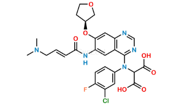 Afatinib Bis-dimethylamino Impurity is chemically N-(4-((3-chloro-4-fluorophenyl)amino)-7-(((S)-tetrahydrofuran-3-yl)oxy)quinazolin-6-yl)-3,4-bis(dimethylamino)butanamide. Afatinib Bis-dimethylamino Impurity is supplied with detailed characterization data compliant with regulatory guideline. Afatinib Bis-dimethylamino Impurity can be used for the analytical method development, method validation (AMV), Quality Controlled (QC) application for Abbreviated New Drug Application (ANDA) or during commercial production of Afatinib.