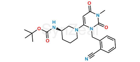 Alogliptin Impurity 29 is chemically Tert-butyl (R)-(1-(3-(2-cyanobenzyl)-1-methyl-2,6-dioxo-1,2,3,6-tetrahydropyrimidin-4-yl)piperidin-3-yl)carbamate. Alogliptin Impurity 29 is supplied with detailed characterization data compliant with regulatory guideline. Alogliptin Impurity 29 can be used for the analytical method development, method validation (AMV), Quality Controlled (QC) application for Abbreviated New Drug Application (ANDA) or during commercial production of Alogliptin.