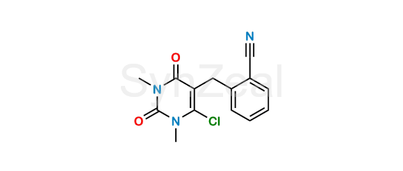 Alogliptin Impurity 68 is chemically 2-((6-Chloro-1,3-dimethyl-2,4-dioxo-1,2,3,4-tetrahydropyrimidin-5-yl)methyl)benzonitrile. Alogliptin Impurity 68 is supplied with detailed characterization data compliant with regulatory guideline. Alogliptin Impurity 68 can be used for the analytical method development, method validation (AMV), Quality Controlled (QC) application for Abbreviated New Drug Application (ANDA) or during commercial production of Alogliptin.