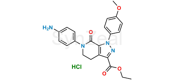 Apixaban Impurity 19 (HCl salt) is chemically Ethyl 6-(4-aminophenyl)-1-(4-methoxyphenyl)-7-oxo-4,5,6,7-tetrahydro-1H-pyrazolo[3,4-c]pyridine-3-carboxylate hydrochloride. Apixaban Impurity 19 (HCl salt) is supplied with detailed characterization data compliant with regulatory guideline. Apixaban Impurity 19 (HCl salt) can be used for the analytical method development, method validation (AMV), Quality Controlled (QC) application for Abbreviated New Drug Application (ANDA) or during commercial production of Apixaban.