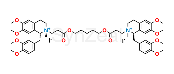 Chemical Name: (1R,2R)-1-(3,4-Dimethoxybenzyl)-2-(3-((5-((3-((1R)-1-(3,4-dimethoxybenzyl)-6,7-dimethoxy-2-methyl-1,2,3,4-tetrahydroisoquinolin-2-ium-2-yl)propanoyl)oxy)pentyl)oxy)-3-oxopropyl)-6,7-dimethoxy-2-methyl-1,2,3,4-tetrahydroisoquinolin-2-ium iodide