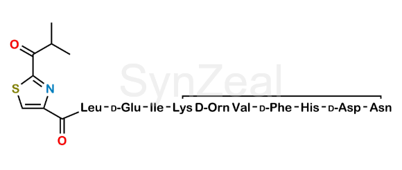 Chemical Name: 4,10-anhydro[N-[[2-(2-methyl-1-oxopropyl)-1,3-thiazol-4-yl]carbonyl]-L-leucyl-D-α-glutamyl-L-isoleucyl-L-lysyl-D-ornithyl-L-valyl-D-phenylalanyl-L-histidyl-D-α-aspartyl-L-asparagine] (as per EP)