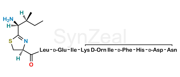 Chemical Name: 4,10-anhydro[N-[[(4S)-2-[(1S,2S)-1-amino-2-methylbutyl]-4,5-dihydro-1,3-thiazol-4-yl]carbonyl]-L-leucyl-D-α-glutamyl-L-isoleucyl-L-lysyl-D-ornithyl-L-isoleucyl-D-phenylalanyl-L-histidyl-D-α-aspartyl-L-asparagine] (as per EP)
