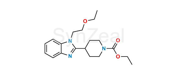Bilastine Impurity 21 is chemically Ethyl 4-(1-(2-ethoxyethyl)-1H-benzo[d]imidazol-2-yl)piperidine-1-carboxylate. Bilastine Impurity 21 is supplied with detailed characterization data compliant with regulatory guideline. Bilastine Impurity 21 can be used for the analytical method development, method validation (AMV), Quality Controlled (QC) application for Abbreviated New Drug Application (ANDA) or during commercial production of Bilastine.