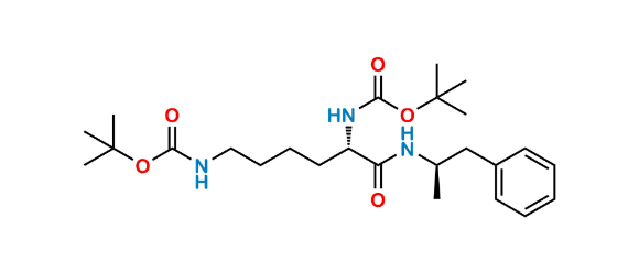 Bis(tert-Butoxycarbonyl) (S,R)-Lisdexamphetamine is chemically Di-tert-butyl ((S)-6-oxo-6-(((R)-1-phenylpropan-2-yl)amino)hexane-1,5-diyl)dicarbamate. Bis(tert-Butoxycarbonyl) (S,R)-Lisdexamphetamine is supplied with detailed characterization data compliant with regulatory guideline. Bis(tert-Butoxycarbonyl) (S,R)-Lisdexamphetamine can be used for the analytical method development, method validation (AMV), Quality Controlled (QC) application for Abbreviated New Drug Application (ANDA) or during commercial production of Lisdexamfetamine.