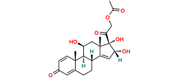 16Alpha-Hydroxy Prednisolone-14-ene Acetate (USP) is chemically 2-Oxo-2-((8R,9S,10R,11S,13S,16R,17S)-11,16,17-trihydroxy-10,13-dimethyl-3-oxo-6,7,8,9,10,11,12,13,16,17-decahydro-3H-cyclopenta[a]phenanthren-17-yl)ethyl acetate (as per USP). 16Alpha-Hydroxy Prednisolone-14-ene Acetate (USP) is supplied with detailed characterization data compliant with regulatory guideline. 16Alpha-Hydroxy Prednisolone-14-ene Acetate (USP) can be used for the analytical method development, method validation (AMV), Quality Controlled (QC) application for Abbreviated New Drug Application (ANDA) or during commercial production of Budesonide.