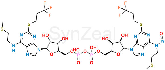 Smiles: FC(CCSC1=NC(N(CCSC)N=O)=C2C(N([C@H]3[C@H](O)[C@H](O)[C@H](COP(O)(OP(O)(OC[C@@H]4[C@@H](O)[C@@H](O)[C@H](N5C6=C(C(NCCSC)=NC(SCCC(F)(F)F)=N6)N=C5)O4)=O)=O)O3)C=N2)=N1)(F)F