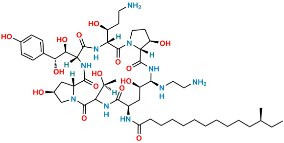 Chemical Name: (12S)-N-((2S,9R,11R,12R,14aR,15R,20R,23R,25aR)-20-((S)-3-amino-1-hydroxypropyl)-12-((2-aminoethyl)amino)-23-((1S,2R)-1,2-dihydroxy-2-(4-hydroxyphenyl)ethyl)-2,11,15-trihydroxy-6-((S)-1-hydroxyethyl)-5,8,14,19,22,25-hexaoxotetracosahydro-1H-dipyrrolo[2,1-c:2',1'-l][1,4,7,10,13,16]hexaazacyclohenicosin-9-yl)-12-methyltetradecanamide