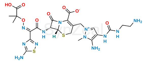 Chemical Name: (6R,7R)-7-((Z)-2-(5-Amino-1,2,4-thiadiazol-3-yl)-2-(((2-carboxypropan-2-yl)oxy)imino)acetamido)-3-((5-amino-4-(3-(2-aminoethyl)ureido)-1-methyl-1H-pyrazol-2-ium-2-yl)methyl)-8-oxo-5-thia-1-azabicyclo[4.2.0]oct-2-ene-2-carboxylate