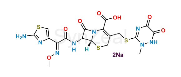 Chemical Name: (6R,7R)-7-((E)-2-(2-aminothiazol-4-yl)-2-(methoxyimino)acetamido)-3-(((2-methyl-5,6-dioxo-1,2,5,6-tetrahydro-1,2,4-triazin-3-yl)thio)methyl)-8-oxo-5-thia-1-azabicyclo[4.2.0]oct-2-ene-2-carboxylic acid, sodium salt