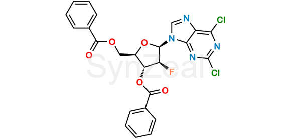 Clofarabine Chloro Dibenzoate Impurity is chemically ((2R,3R,4S,5R)-3-(benzoyloxy)-5-(2,6-dichloro-9H-purin-9-yl)-4-fluorotetrahydrofuran-2-yl)methyl benzoate. Clofarabine Chloro Dibenzoate Impurity is supplied with detailed characterization data compliant with regulatory guideline. Clofarabine Chloro Dibenzoate Impurity can be used for the analytical method development, method validation (AMV), Quality Controlled (QC) application for Abbreviated New Drug Application (ANDA) or during commercial production of Clofarabine.