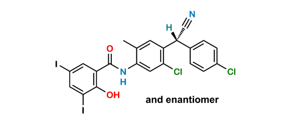 Chemical Name: N-[5-Chloro-4-[(RS)-(4-chlorophenyl)cyanomethyl]-2-methylphenyl]-2-hydroxy-3,5-diiodobenzamide (as per EP)