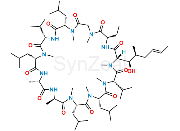 Cyclosporin Impurity 4 is chemically (3S,6S,9S,12R,15S,18S,21S,24S,30S,33S)-30-ethyl-33-((1R,2S,E)-1-hydroxy-2-methylhex-4-en-1-yl)-6,9,18,24-tetraisobutyl-3,21-diisopropyl-1,4,7,10,12,15,19,25,28-nonamethyl-1,4,7,10,13,16,19,22,25,28,31-undecaazacyclotritriacontan-2,5,8,11,14,17,20,23,26,29,32-undecaone. Cyclosporin Impurity 4 is supplied with detailed characterization data compliant with regulatory guideline. Cyclosporin Impurity 4 can be used for the analytical method development, method validation (AMV), Quality Controlled (QC) application for Abbreviated New Drug Application (ANDA) or during commercial production of Cyclosporin.