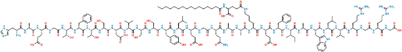 Smiles: CCCCCCCCCCCCCCCC(N[C@H](C(O)=O)CCC(NCCCC[C@@H](C(N[C@H](C(N[C@H](C(N[C@H](C(N[C@H](C(N[C@H](C(N[C@H](C(N[C@H](C(N[C@H](C(NCC(N[C@H](C(NCC(O)=O)=O)CCCNC(N)=N)=O)=O)CCCNC(N)=N)=O)C(C)C)=O)CC(C)C)=O)CC1=CNC2=CC=CC=C12)=O)C)=O)[C@H](CC)C)=O)CC3=CC=CC=C3)=O)CCC(O)=O)=O)NC([C@@H](NC([C@@H](NC([C@H](CCC(N)=O)NC(CNC([C@@H](NC([C@@H](NC([C@@H](NC([C@@H](NC([C@@H](NC([C@H](C(C)C)NC([C@@H](NC([C@@H](NC([C@H]([C@H](O)C)NC([C@@H](NC([C@H]([C@H](O)C)NC(CNC([C@@H](NC([C@@H](NC([C@H](N)CC4=CN=CN4)=O)C)=O)CCC(O)=O)=O)=O)=O)CC5=CC=CC=C5)=O)=O)CO)=O)CC(O)=O)=O)=O)CO)=O)CO)=O)CC6=CC=C(C=C6)O)=O)CC(C)C)=O)CCC(O)=O)=O)=O)=O)C)=O)C)=O)=O)=O