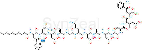 Chemical Name: (Z)-32-(4-Amino-2-(2-decanamido-3-(1H-indol-3-yl)propanamido)-4-oxobutanamido)-2-(2-(2-aminophenyl)-2-oxoethyl)-23-(3-aminopropyl)-14,20-bis(carboxymethyl)-5-(1-carboxypropan-2-yl)-29-ethylidene-8-(hydroxymethyl)-17-methyl-4,7,10,13,16,19,22,25,28,31-decaoxo-3,6,9,12,15,18,21,24,27,30-decaazatetratriacontanedioic acid