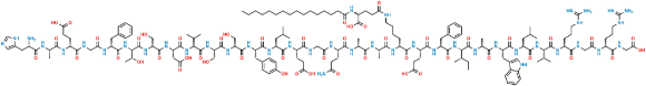 Smiles: CCCCCCCCCCCCCCCC(N[C@H](C(O)=O)CCC(NCCCC[C@@H](C(N[C@H](C(N[C@H](C(N[C@H](C(N[C@H](C(N[C@H](C(N[C@H](C(N[C@H](C(N[C@H](C(NCC(N[C@H](C(NCC(O)=O)=O)CCCNC(N)=N)=O)=O)CCCNC(N)=N)=O)C(C)C)=O)CC(C)C)=O)CC1=CNC2=CC=CC=C12)=O)C)=O)[C@H](CC)C)=O)CC3=CC=CC=C3)=O)CCC(O)=O)=O)NC([C@@H](NC([C@@H](NC([C@H](CCC(N)=O)NC(CNC([C@@H](NC([C@@H](NC([C@@H](NC([C@@H](NC([C@@H](NC([C@H](C(C)C)NC([C@@H](NC([C@@H](NC([C@H]([C@H](O)C)NC([C@@H](NC(CNC([C@@H](NC([C@@H](NC([C@H](CC4=CN=CN4)N)=O)C)=O)CCC(O)=O)=O)=O)CC5=CC=CC=C5)=O)=O)CO)=O)CC(O)=O)=O)=O)CO)=O)CO)=O)CC6=CC=C(C=C6)O)=O)CC(C)C)=O)CCC(O)=O)=O)=O)=O)C)=O)C)=O)=O)=O
