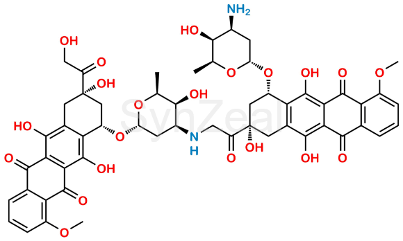 Chemical Name: (8S,10S)-10-(((2R,4S,5S,6S)-4-Amino-5-hydroxy-6-methyltetrahydro-2H-pyran-2-yl)oxy)-6,8,11-trihydroxy-8-(((2S,3S,4S,6R)-3-hydroxy-2-methyl-6-(((1S,3S)-3,5,12-trihydroxy-3-(2-hydroxyacetyl)-10-methoxy-6,11-dioxo-1,2,3,4,6,11-hexahydrotetracen-1-yl)oxy)tetrahydro-2H-pyran-4-yl)glycyl)-1-methoxy-7,8,9,10-tetrahydrotetracene-5,12-dione