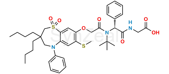 Chemical Name: (R)-(2-(N-(tert-butyl)-2-((3,3-dibutyl-7-(methylthio)-1,1-dioxido-5-phenyl-2,3,4,5-tetrahydrobenzo[b][1,4]thiazepin-8-yl)oxy)acetamido)-2-phenylacetyl)glycine
