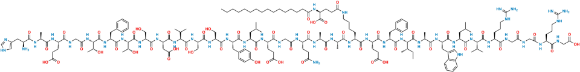 Smiles: O=C(O)CNC([C@H](CCCNC(N)=N)NC(CNC(CNC([C@H](CCCNC(N)=N)NC([C@H](C(C)C)NC([C@H](CC(C)C)NC([C@H](CC1=CNC2=C1C=CC=C2)NC([C@H](C)NC([C@H]([C@@H](C)CC)NC([C@H](CC3=CC=CC=C3)NC([C@H](CCC(O)=O)NC([C@H](CCCCNC(CC[C@@H](C(O)=O)NC(CCCCCCCCCCCCCCC)=O)=O)NC([C@H](C)NC([C@H](C)NC([C@H](CCC(N)=O)NC(CNC([C@H](CCC(O)=O)NC([C@H](CC(C)C)NC([C@H](CC4=CC=C(O)C=C4)NC([C@H](CO)NC([C@H](CO)NC([C@H](C(C)C)NC([C@H](CC(O)=O)NC([C@H](CO)NC([C@H]([C@H](O)C)NC([C@H](CC5=CC=CC=C5)NC([C@H]([C@H](O)C)NC(CNC([C@H](CCC(O)=O)NC([C@H](C)NC([C@H](CC6=CNC=N6)N)=O)=O)=O)=O)=O)=O)=O)=O)=O)=O)=O)=O)=O)=O)=O)=O)=O)=O)=O)=O)=O)=O)=O)=O)=O)=O)=O)=O)=O)=O)=O