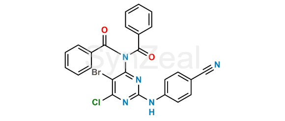 Etravirine Impurity 18 is chemically N-Benzoyl-N-(5-bromo-6-chloro-2-((4-cyanophenyl)amino)pyrimidin-4-yl)benzamide. Etravirine Impurity 18 is supplied with detailed characterization data compliant with regulatory guideline. Etravirine Impurity 18 can be used for the analytical method development, method validation (AMV), Quality Controlled (QC) application for Abbreviated New Drug Application (ANDA) or during commercial production of Etravirine.