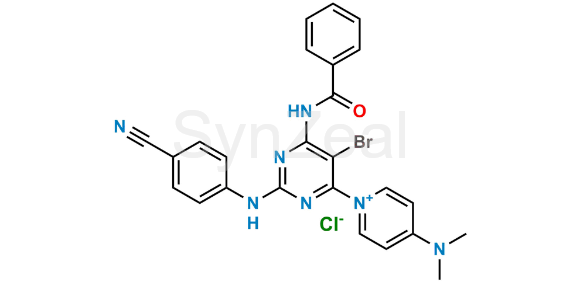 Etravirine Impurity 22 is chemically 1-(6-Benzamido-5-bromo-2-((4-cyanophenyl)amino)pyrimidin-4-yl)-4-(dimethylamino)pyridin-1-ium chloride. Etravirine Impurity 22 is supplied with detailed characterization data compliant with regulatory guideline. Etravirine Impurity 22 can be used for the analytical method development, method validation (AMV), Quality Controlled (QC) application for Abbreviated New Drug Application (ANDA) or during commercial production of Etravirine.