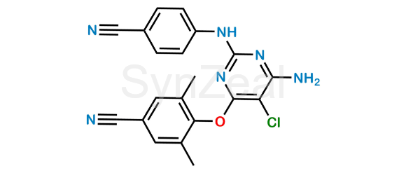 Etravirine Chloro Impurity is chemically 4-((6-Amino-5-chloro-2-((4-cyanophenyl)amino)pyrimidin-4-yl)oxy)-3,5-dimethylbenzonitrile. Etravirine Chloro Impurity is supplied with detailed characterization data compliant with regulatory guideline. Etravirine Chloro Impurity can be used for the analytical method development, method validation (AMV), Quality Controlled (QC) application for Abbreviated New Drug Application (ANDA) or during commercial production of Etravirine.