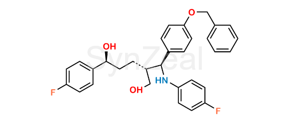 Ezetimibe Benzyl Diol Impurity is chemically (1S,4R)-4-((S)-(4-(Benzyloxy)phenyl)((4-fluorophenyl)amino)methyl)-1-(4-fluorophenyl)pentane-1,5-diol. Ezetimibe Benzyl Diol Impurity is supplied with detailed characterization data compliant with regulatory guideline. Ezetimibe Benzyl Diol Impurity can be used for the analytical method development, method validation (AMV), Quality Controlled (QC) application for Abbreviated New Drug Application (ANDA) or during commercial production of Ezetimibe.