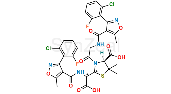 Chemical Name: (2Ξ,4S)-2-[(Ξ)-carboxy[3-(2-chloro-6-fluorophenyl)-5-methyl-1,2-oxazol-4-amido]methyl]-3-[[3-(2-chloro-6-fluorophenyl)-5-methyl-1,2-oxazol-4-amido]acetyl]-5,5-dimethyl-1,3-thiazolidine-4-carboxylic acid (as per EP)
