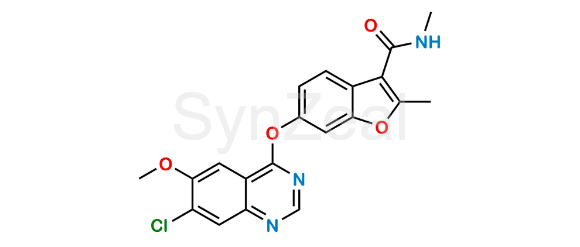 Fruquintinib Impurity 1 is chemically 6-((7-Chloro-6-methoxyquinazolin-4-yl)oxy)-N,2-dimethylbenzofuran-3-carboxamide. Fruquintinib Impurity 1 is supplied with detailed characterization data compliant with regulatory guideline. Fruquintinib Impurity 1 can be used for the analytical method development, method validation (AMV), Quality Controlled (QC) application for Abbreviated New Drug Application (ANDA) or during commercial production of Fruquintinib.