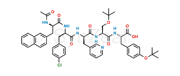 Ganirelix Acetate Impurity B is chemically (2S,5S,8R,11R,14R)-2-(4-(Tert-butoxy)benzyl)-5-(tert-butoxymethyl)-11-(4-chlorobenzyl)-14-(naphthalen-2-ylmethyl)-4,7,10,13,16-pentaoxo-8-(pyridin-3-ylmethyl)-3,6,9,12,15-pentaazaheptadecanoic acid. Ganirelix Acetate Impurity B is supplied with detailed characterization data compliant with regulatory guideline. Ganirelix Acetate Impurity B can be used for the analytical method development, method validation (AMV), Quality Controlled (QC) application for Abbreviated New Drug Application (ANDA) or during commercial production of Ganirelix.