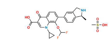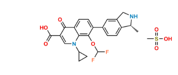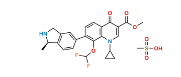 Garenoxacin Impurity 2 is chemically Methyl (R)-1-cyclopropyl-8-(difluoromethoxy)-7-(1-methylisoindolin-5-yl)-4-oxo-1,4-dihydroquinoline-3-carboxylate methanesulfonate. Garenoxacin Impurity 2 is supplied with detailed characterization data compliant with regulatory guideline. Garenoxacin Impurity 2 can be used for the analytical method development, method validation (AMV), Quality Controlled (QC) application for Abbreviated New Drug Application (ANDA) or during commercial production of Garenoxacin.