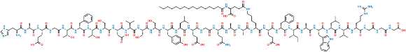 Smiles: CCCCCCCCCCCCCCCC(N[C@H](C(O)=O)CCC(NCCCC[C@@H](C(N[C@H](C(N[C@H](C(N[C@H](C(N[C@H](C(N[C@H](C(N[C@H](C(N[C@H](C(N[C@H](C(NCC(NCC(NCC(O)=O)=O)=O)=O)CCCNC(N)=N)=O)C(C)C)=O)CC(C)C)=O)CC1=CNC2=CC=CC=C12)=O)C)=O)[C@H](CC)C)=O)CC3=CC=CC=C3)=O)CCC(O)=O)=O)NC([C@@H](NC([C@@H](NC([C@H](CCC(N)=O)NC(CNC([C@@H](NC([C@@H](NC([C@@H](NC([C@@H](NC([C@@H](NC([C@H](C(C)C)NC([C@@H](NC([C@@H](NC([C@H]([C@H](O)C)NC([C@@H](NC([C@H]([C@H](O)C)NC(CNC([C@@H](NC([C@@H](NC([C@H](CC4=CN=CN4)N)=O)C)=O)CCC(O)=O)=O)=O)=O)CC5=CC=CC=C5)=O)=O)CO)=O)CC(O)=O)=O)=O)CO)=O)CO)=O)CC6=CC=C(C=C6)O)=O)CC(C)C)=O)CCC(O)=O)=O)=O)=O)C)=O)C)=O)=O)=O