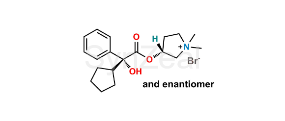 Chemical Name: (3RS)-3-[(2RS)-(2-cyclopentyl-2-hydroxy-2-phenylacetyl)oxy]-1,1-dimethylpyrrolidinium bromide (as per EP)