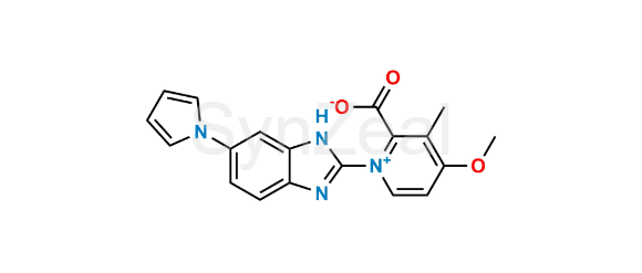 Ilaprazole Impurity 10 is chemically 1-(6-(1H-Pyrrol-1-yl)-1H-benzo[d]imidazol-2-yl)-4-methoxy-3-methylpyridin-1-ium-2-carboxylate. Ilaprazole Impurity 10 is supplied with detailed characterization data compliant with regulatory guideline. Ilaprazole Impurity 10 can be used for the analytical method development, method validation (AMV), Quality Controlled (QC) application for Abbreviated New Drug Application (ANDA) or during commercial production of Ilaprazole.