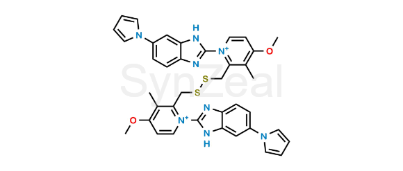 Ilaprazole Impurity 13 is chemically 2,2'-(Disulfanediylbis(methylene))bis(1-(6-(1H-pyrrol-1-yl)-1H-benzo[d]imidazol-2-yl)-4-methoxy-3-methylpyridin-1-ium). Ilaprazole Impurity 13 is supplied with detailed characterization data compliant with regulatory guideline. Ilaprazole Impurity 13 can be used for the analytical method development, method validation (AMV), Quality Controlled (QC) application for Abbreviated New Drug Application (ANDA) or during commercial production of Ilaprazole.