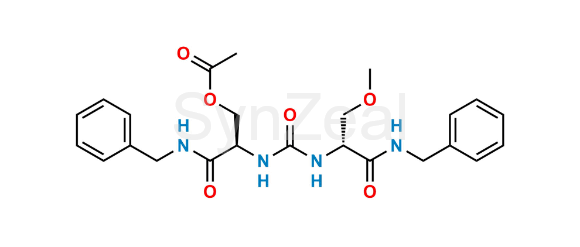 Lacosamide Impurity 9 is chemically (R)-3-(benzylamino)-2-(3-((R)-1-(benzylamino)-3-methoxy-1-oxopropan-2-yl)ureido)-3-oxopropyl acetate. Lacosamide Impurity 9 is supplied with detailed characterization data compliant with regulatory guideline. Lacosamide Impurity 9 can be used for the analytical method development, method validation (AMV), Quality Controlled (QC) application for Abbreviated New Drug Application (ANDA) or during commercial production of Lacosamide.