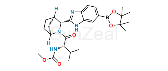 Ledipasvir Impurity-16 is chemically Methyl ((S)-3-methyl-1-oxo-1-((1S,3R,4R)-3-(6-(4,4,5,5-tetramethyl-1,3,2-dioxaborolan-2-yl)-1H-benzo[d]imidazol-2-yl)-2-azabicyclo[2.2.1]heptan-2-yl)butan-2-yl)carbamate. Ledipasvir Impurity-16 is supplied with detailed characterization data compliant with regulatory guideline. Ledipasvir Impurity-16 can be used for the analytical method development, method validation (AMV), Quality Controlled (QC) application for Abbreviated New Drug Application (ANDA) or during commercial production of Ledipasvir.