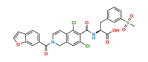 Chemical Name: (S)-2-(2-(Benzofuran-6-carbonyl)-5,7-dichloro-1,2-dihydroisoquinoline-6-carboxamido)-3-(3-(methylsulfonyl)phenyl)propanoic acid