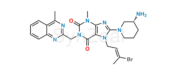 Linagliptin Bromo Impurity is chemically (R, E)-8-(3-Aminopiperidin-1-yl)-7-(3-bromobut-2-en-1-yl)-3-methyl-1-((4- methylquinazolin-2-yl) methyl)-1H-purine-2, 6(3H, 7H)-dione. Linagliptin Bromo Impurity is supplied with detailed characterization data compliant with regulatory guideline. Linagliptin Bromo Impurity can be used for the analytical method development, method validation (AMV), Quality Controlled (QC) application for Abbreviated New Drug Application (ANDA) or during commercial production of Linagliptin.