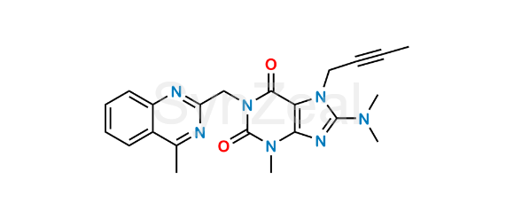 Linagliptin Dimethyl impurity is chemically 7-(but-2-yn-1-yl)-8-(dimethylamino)-3-methyl-1-((4-methylquinazolin-2-yl)methyl)-3,7-dihydro-1H-purine-2,6-dione. Linagliptin Dimethyl impurity is supplied with detailed characterization data compliant with regulatory guideline. Linagliptin Dimethyl impurity can be used for the analytical method development, method validation (AMV), Quality Controlled (QC) application for Abbreviated New Drug Application (ANDA) or during commercial production of Linagliptin.