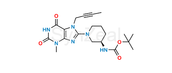 Linagliptin Impurity 21 is chemically Tert-butyl (R)-(1-(7-(but-2-yn-1-yl)-3-methyl-2,6-dioxo-2,3,6,7-tetrahydro-1H-purin-8-yl)piperidin-3-yl)carbamate. Linagliptin Impurity 21 is supplied with detailed characterization data compliant with regulatory guideline. Linagliptin Impurity 21 can be used for the analytical method development, method validation (AMV), Quality Controlled (QC) application for Abbreviated New Drug Application (ANDA) or during commercial production of Linagliptin.