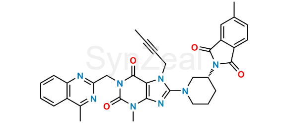 Linagliptin Impurity 30 is chemically (R)-7-(But-2-yn-1-yl)-3-methyl-8-(3-(5-methyl-1,3-dioxoisoindolin-2-yl)piperidin-1-yl)-1-((4-methylquinazolin-2-yl)methyl)-3,7-dihydro-1H-purine-2,6-dione. Linagliptin Impurity 30 is supplied with detailed characterization data compliant with regulatory guideline. Linagliptin Impurity 30 can be used for the analytical method development, method validation (AMV), Quality Controlled (QC) application for Abbreviated New Drug Application (ANDA) or during commercial production of Linagliptin.
