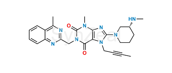 Linagliptin Impurity 46 is chemically (R)-7-(but-2-yn-1-yl)-3-methyl-8-(3-(methylamino)piperidin-1-yl)-1-((4-methylquinazolin-2-yl)methyl)-3,7-dihydro-1H-purine-2,6-dione. Linagliptin Impurity 46 is supplied with detailed characterization data compliant with regulatory guideline. Linagliptin Impurity 46 can be used for the analytical method development, method validation (AMV), Quality Controlled (QC) application for Abbreviated New Drug Application (ANDA) or during commercial production of Linagliptin.
