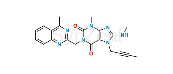 Linagliptin Impurity 49 is chemically 7-(but-2-yn-1-yl)-3-methyl-8-(methylamino)-1-((4-methylquinazolin-2-yl)methyl)-3,7-dihydro-1H-purine-2,6-dione . Linagliptin Impurity 49 is supplied with detailed characterization data compliant with regulatory guideline. Linagliptin Impurity 49 can be used for the analytical method development, method validation (AMV), Quality Controlled (QC) application for Abbreviated New Drug Application (ANDA) or during commercial production of Linagliptin.