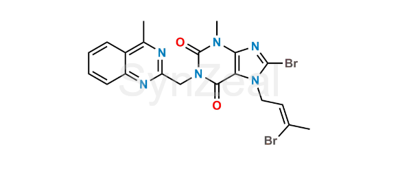 Linagliptin Impurity 57 is chemically (Z)-8-Bromo-7-(3-bromobut-2-en-1-yl)-3-methyl-1-((4-methylquinazolin-2-yl)methyl)-3,7-dihydro-1H-purine-2,6-dione. Linagliptin Impurity 57 is supplied with detailed characterization data compliant with regulatory guideline. Linagliptin Impurity 57 can be used for the analytical method development, method validation (AMV), Quality Controlled (QC) application for Abbreviated New Drug Application (ANDA) or during commercial production of Linagliptin.