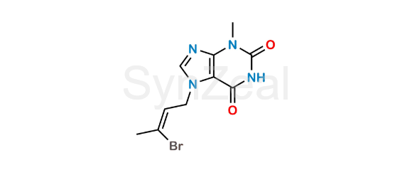 Linagliptin Impurity 59 is chemically (Z)-7-(3-Bromobut-2-en-1-yl)-3-methyl-3,7-dihydro-1H-purine-2,6-dione. Linagliptin Impurity 59 is supplied with detailed characterization data compliant with regulatory guideline. Linagliptin Impurity 59 can be used for the analytical method development, method validation (AMV), Quality Controlled (QC) application for Abbreviated New Drug Application (ANDA) or during commercial production of Linagliptin.