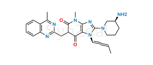 Linagliptin Impurity 70 is chemically 2-((S)-3-Aminopiperidin-1-yl)-1-((S)-buta-1,2-dien-1-yl)-4-methyl-6-((4-methylquinazolin-2-yl)methyl)-1,4-dihydro-5H-imidazo[4,5-b]pyridine-5,7(6H)-dione. Linagliptin Impurity 70 is supplied with detailed characterization data compliant with regulatory guideline. Linagliptin Impurity 70 can be used for the analytical method development, method validation (AMV), Quality Controlled (QC) application for Abbreviated New Drug Application (ANDA) or during commercial production of Linagliptin.