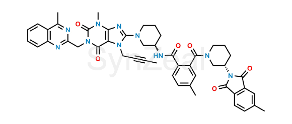 Linagliptin Impurity 71 is chemically N-((R)-1-(7-(But-2-yn-1-yl)-3-methyl-1-((4-methylquinazolin-2-yl)methyl)-2,6-dioxo-2,3,6,7-tetrahydro-1H-purin-8-yl)piperidin-3-yl)-4-methyl-2-((S)-3-(5-methyl-1,3-dioxoisoindolin-2-yl)piperidine-1-carbonyl)benzamide. Linagliptin Impurity 71 is supplied with detailed characterization data compliant with regulatory guideline. Linagliptin Impurity 71 can be used for the analytical method development, method validation (AMV), Quality Controlled (QC) application for Abbreviated New Drug Application (ANDA) or during commercial production of Linagliptin.