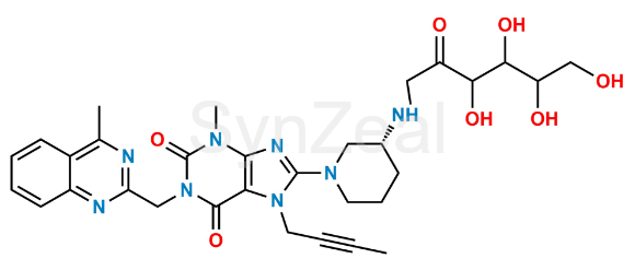Linagliptin Impurity-VII is chemically 7-(but-2-yn-1-yl)-3-methyl-1-((4-methylquinazolin-2-yl)methyl)-8-((3R)-3-((3,4,5,6-tetrahydroxy-2-oxohexyl)amino)piperidin-1-yl)-3,7-dihydro-1H-purine-2,6-dione. Linagliptin Impurity-VII is supplied with detailed characterization data compliant with regulatory guideline. Linagliptin Impurity-VII can be used for the analytical method development, method validation (AMV), Quality Controlled (QC) application for Abbreviated New Drug Application (ANDA) or during commercial production of Linagliptin.